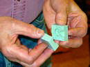 Press clay into the bottom of the mold box, covering